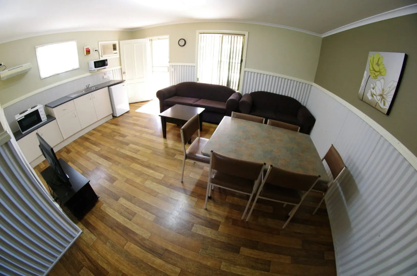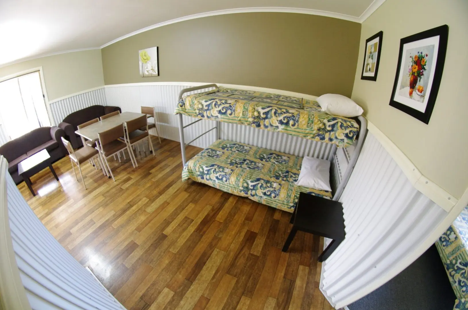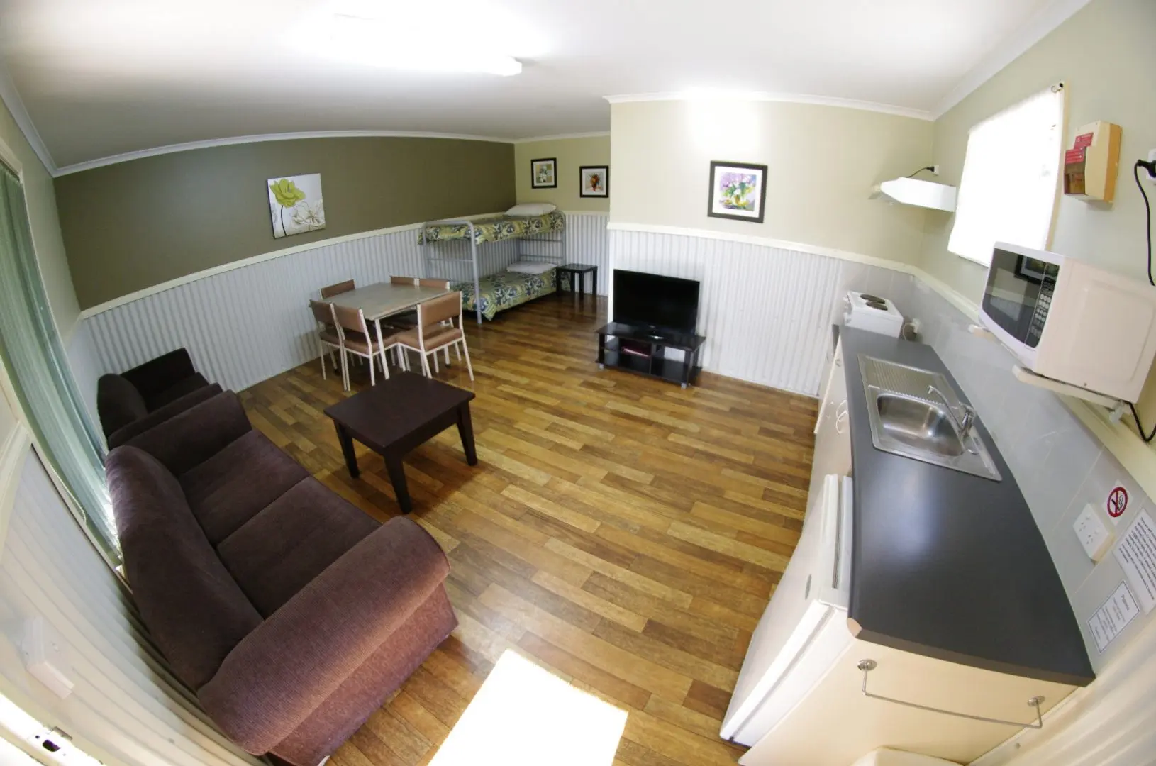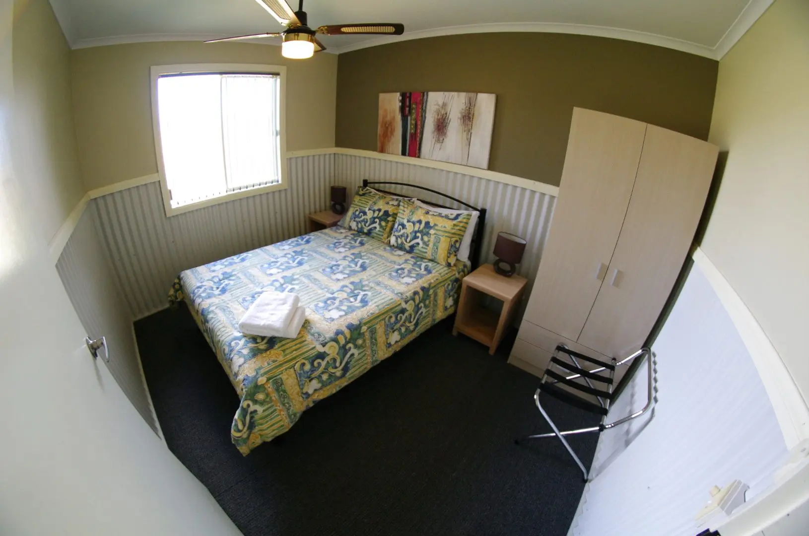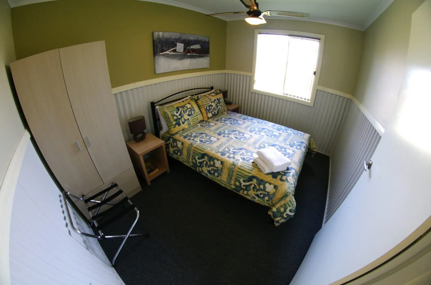 AmenitiesAir conditioned – reverse cycleAlarm Clock Radio Bedding, Linen and Towels Provided Ceiling fan in bedrooms Double beds and bunk Hair dryer Iron & Ironing board Kitchenette with cooktop and sink Lounge Area Microwave Non-Smoking Television & DVD player Toaster Tea/Coffee Making Fridge – bar size Outdoor Setting |